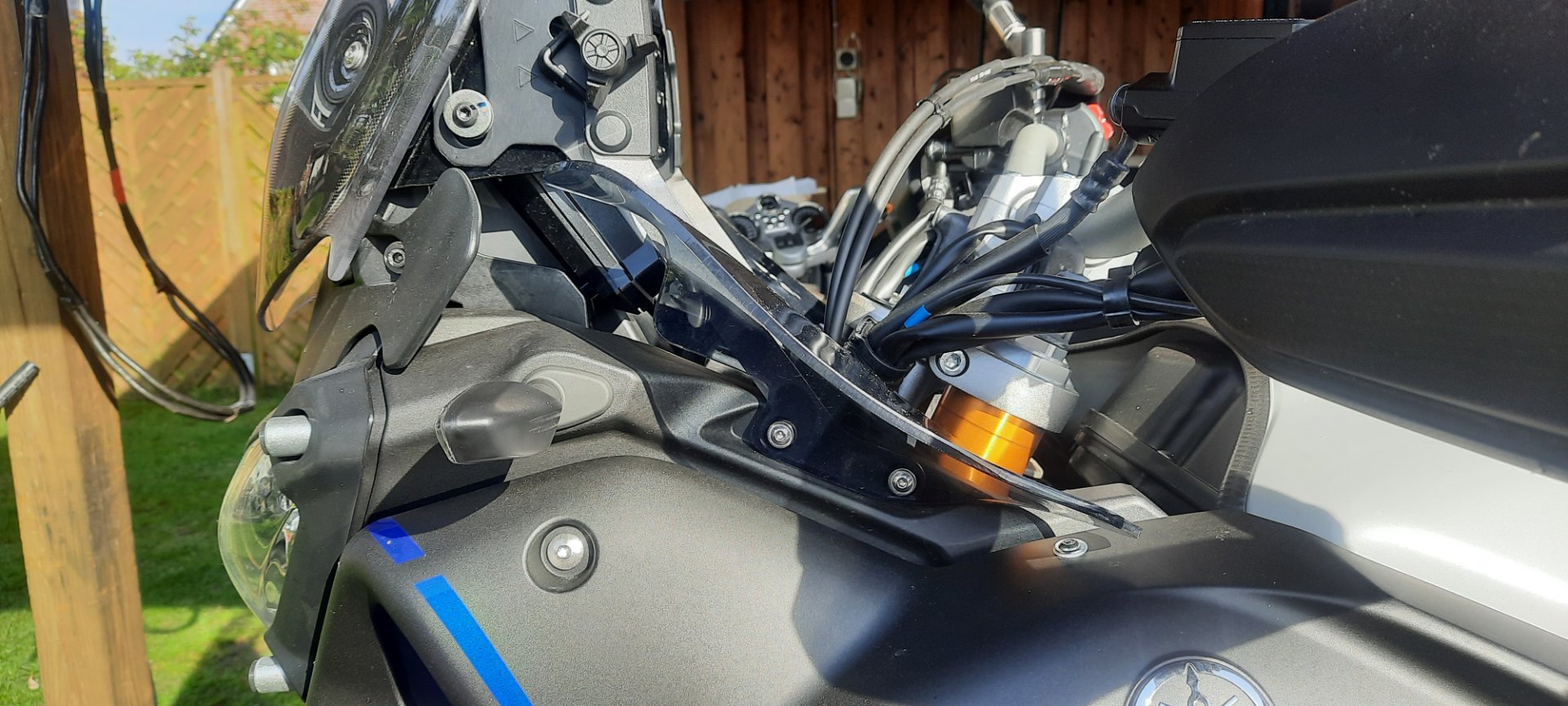 Eine lange nicht lieferbare Cockpitverstärkung ist heute an unsere XTZ gekommen. Schön verarbeitet...Lasergeschnitten und leicht trowalisiert. Wenn Ihr die Windabweiser montiert habt, sind keine weiteren Schrauben/Scheiben notwending. Sonst ist ein Befestigungspaket dabei. Seitlich wackelt es noch ganz wenig...in Fahrtrichtung nahe Null. Das ist mal was, was sich echt lohnt. Kleines Geld...große Wirkung