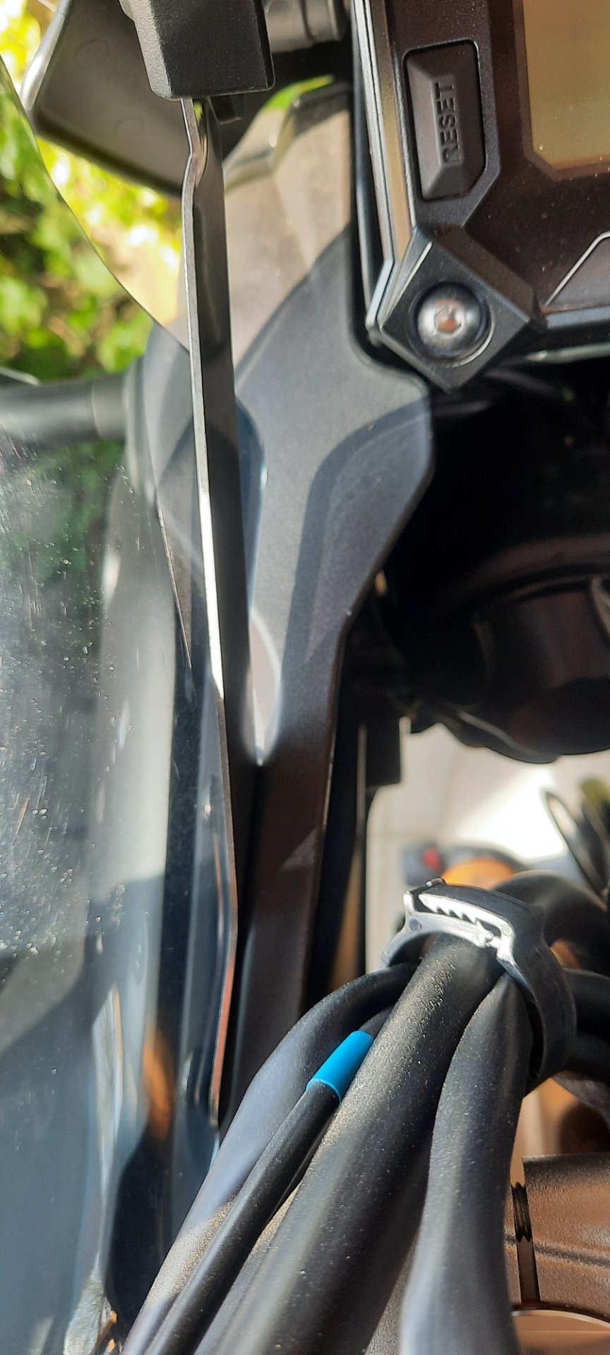 Weil sich ja bei den ersten Versuchsfahrten sich die Gopro an der Cockpitstrebe wegvibriert hatte..... Navi zu schwer...Kamera auch nicht viel leichter und an einem langen Arm links neben der Verkleidung.... Das kommt in Wallung!