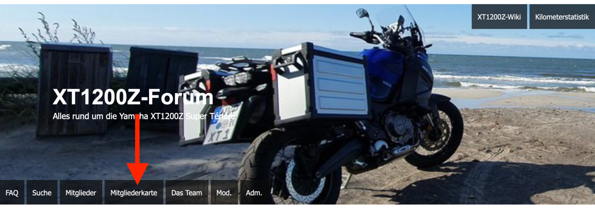 Im Banner unter " XT 1200 Z-Forum " sind fünf karten angeordnet....
