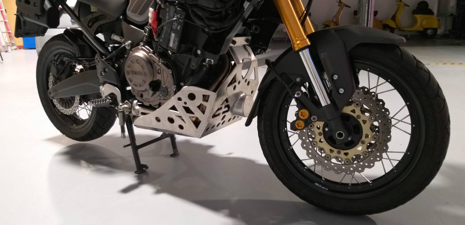 Ich finde ja, dass ein etwas martialischer Motorschutz das gesamte Möppi aufwertet. Das originale Plasikteil wird vielleicht auch seinen Dienst tun, sieht aber sehr billig aus. Mir persönlich gefällt mein Worldcrosser-Bodenblech aber immer noch am besten. Ob die 1 mm geringere Materialdicke wirklich was bewirkt will ich eigentlich gar nicht ausprobieren.