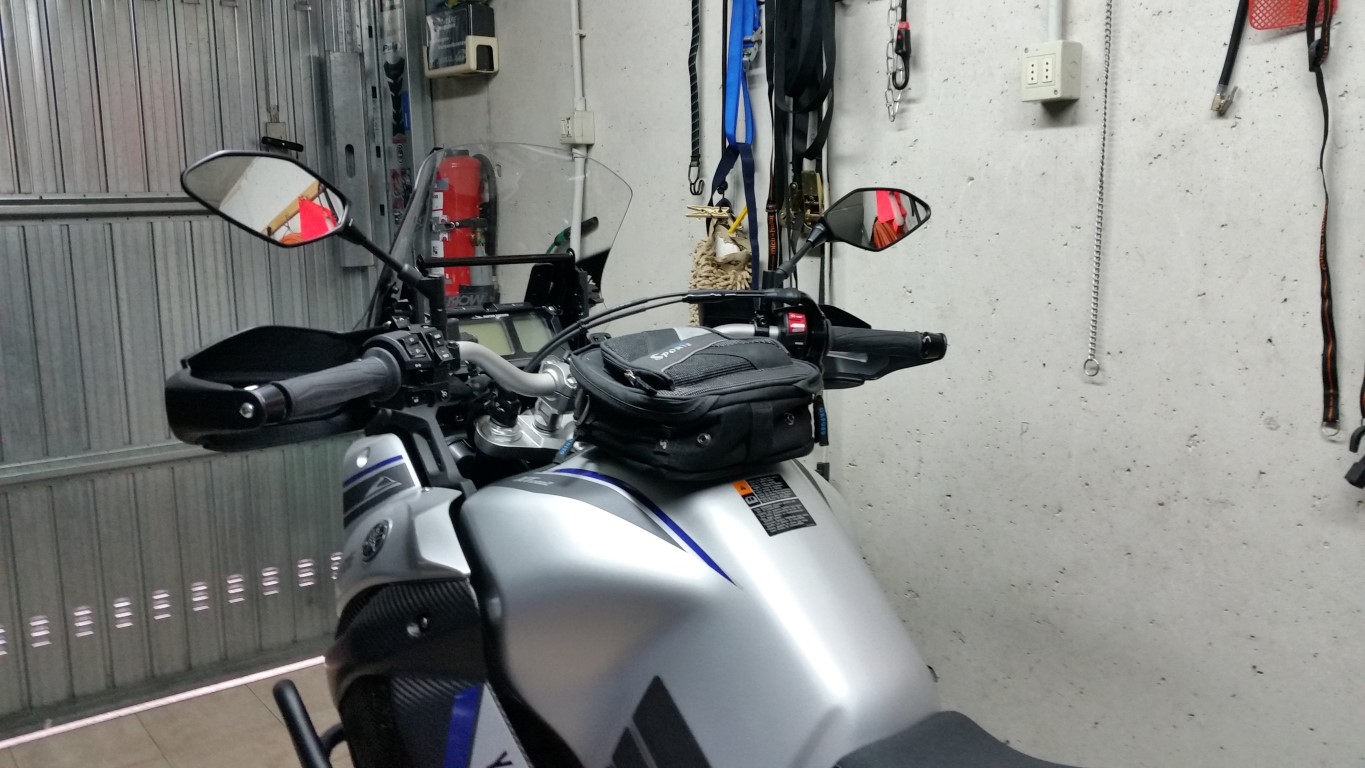 Von meinen früheren Motorrädern habe ich die Tankrucksäcke (alle SW-Motech mit dem alten Quick-Lock-System (nicht EVO)) aufgehoben. Derzeit verwende ich den kleinen "Engage" mit 7 ltr Inhalt. Für die kleine Runde langt er, um Geldbörse, Handy, ABEs und Handy unterzubringen. Bei größerer Tour habe ich noch den "Engage XL" mit einem Kartenfach zum Anschnallen (vorne 2 Ösen zum Einklinken und zum Fahrer hin ein Klett).