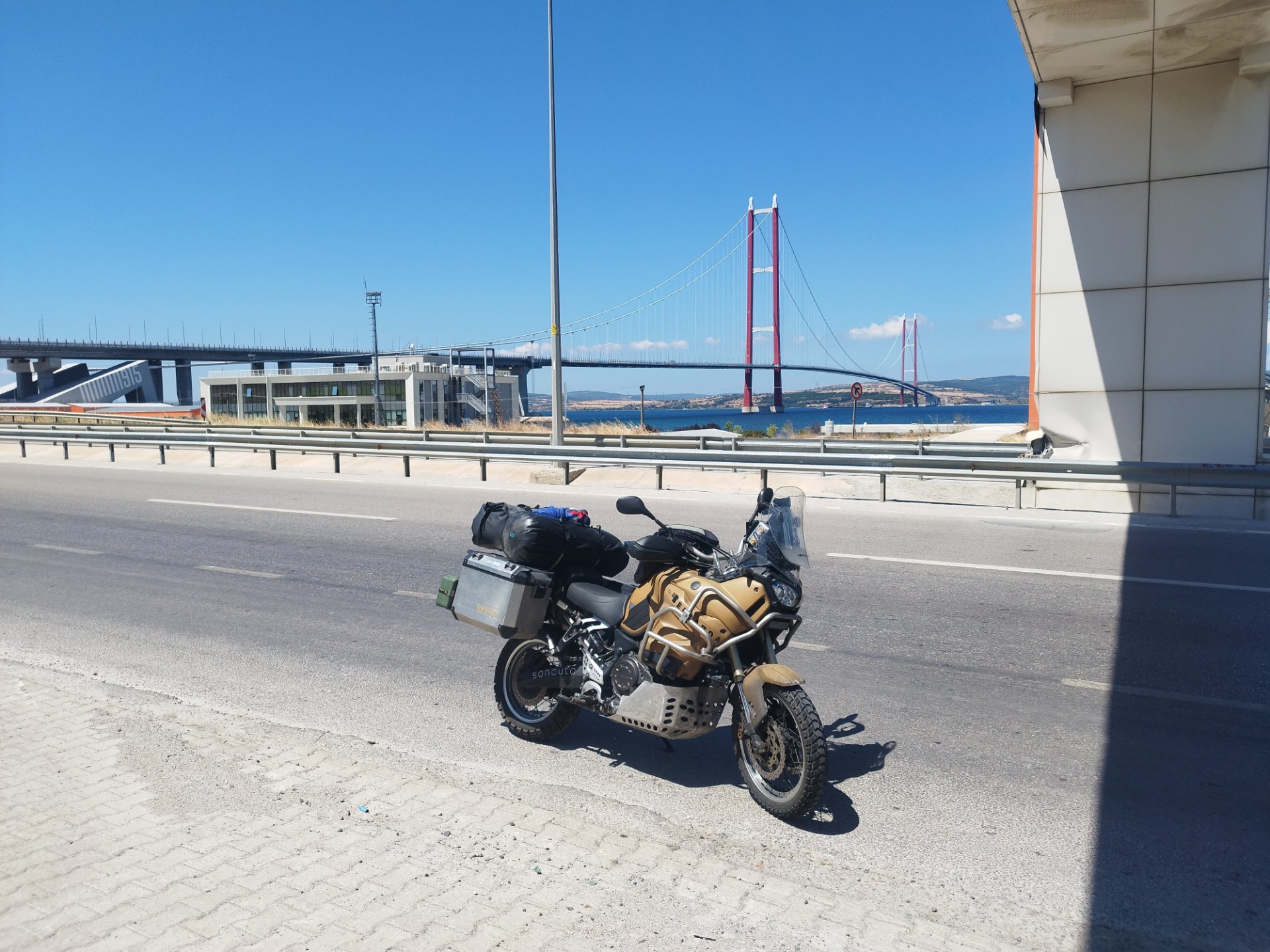 Hängebrücke in der Türkei.Kurz nach der Grenze in die Türkei, hab ich eine weiße XT gesehen und gegrüßt.