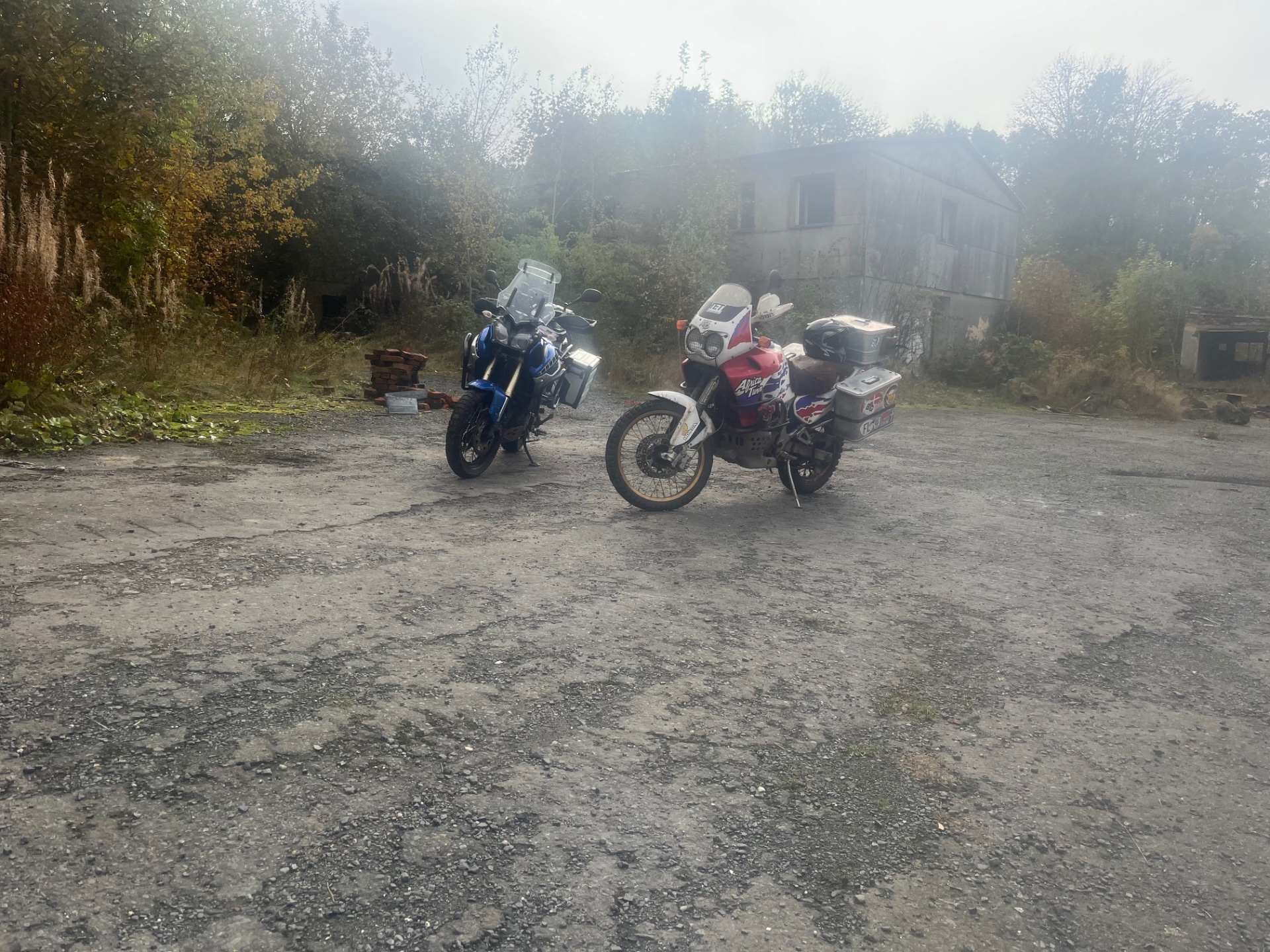 Gestern irgendwo in CZ an einer verlassenen Kaserne. Die Pirelli STR sind mit wenig Profil so komplett unbrauchbar aber ging schon irgendwie. Heute einen neuen Satz bestellt, vorn Ranger hinten Scout.