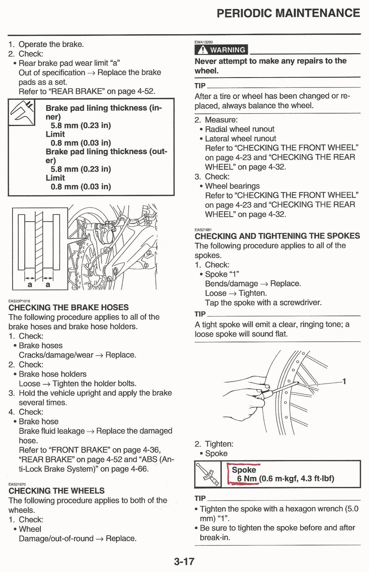 Daher wundert mich diese Anweisung von Yamaha. Ich vermute, dass viele Felgen nur deshalb gebrochen sind, weil die Speichen zu fest gezogen wurden im Rahmen der Inspektion.