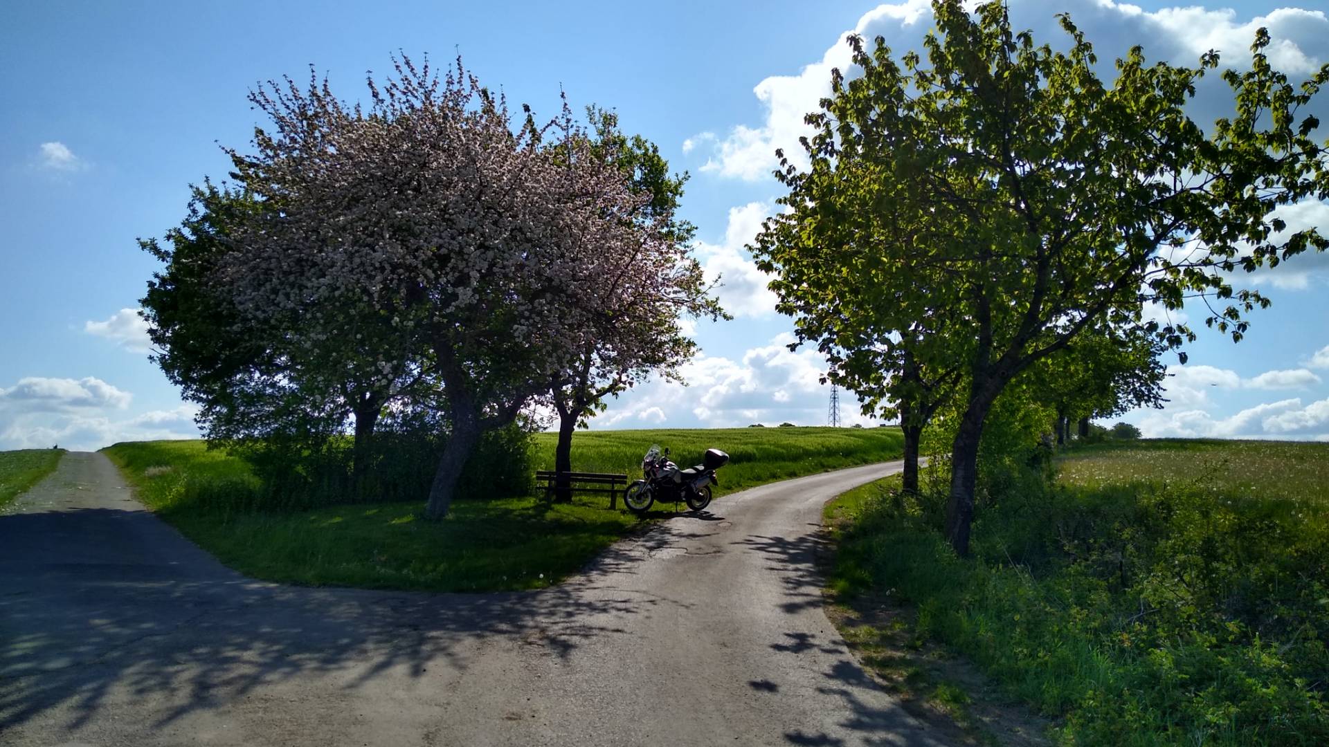 Heute ist es schon bedeutend wolkiger als gestern, dennoch ein Bänkchen unterm Lindenbaum gefunden auf der Bäckerrunde, die mal wieder ausgedehnter verlief als geplant.
