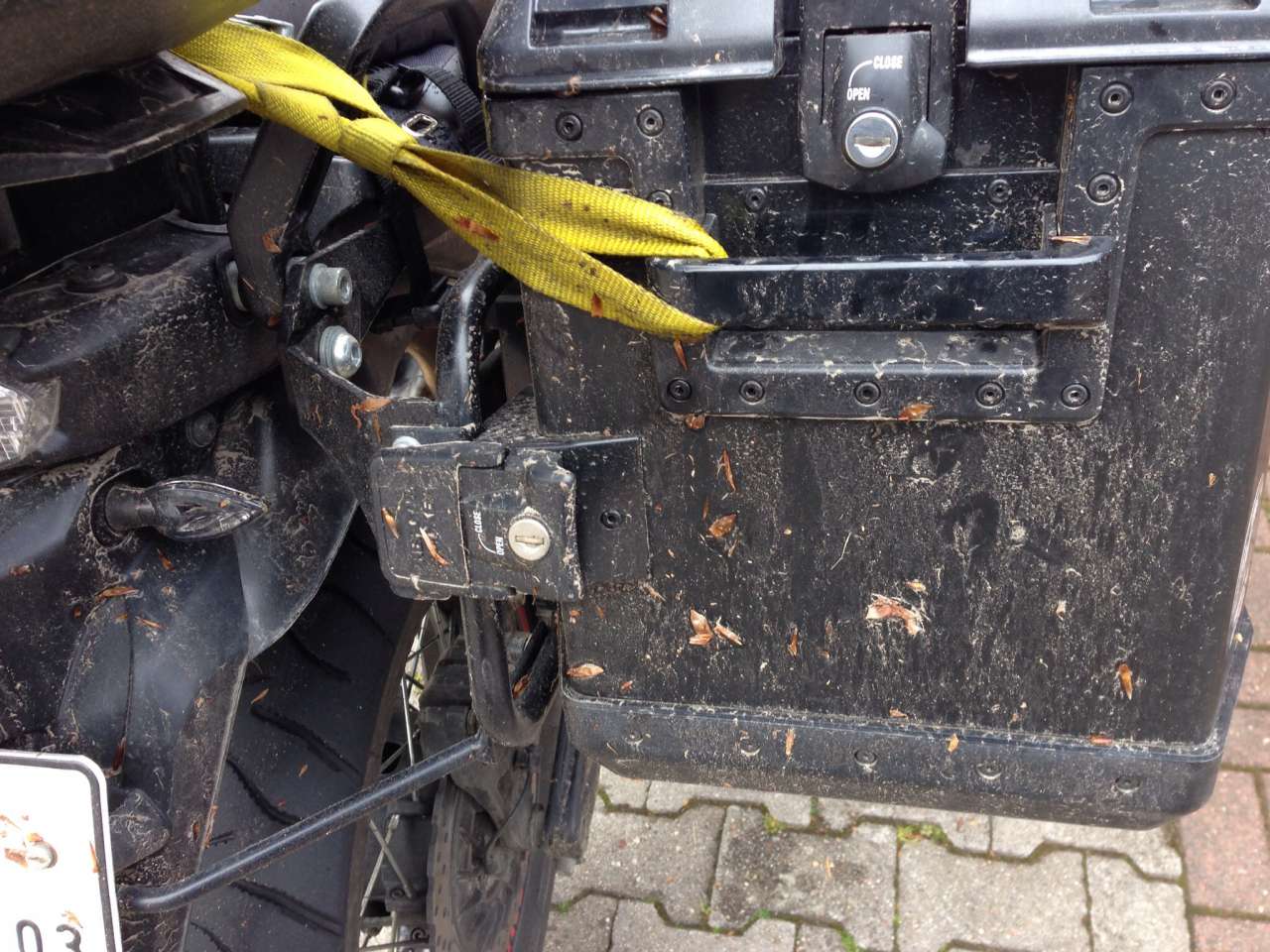 Meine Koffer und eigentlich das ganze Mopped sehen aus wie Sau. (Siehe Bild)