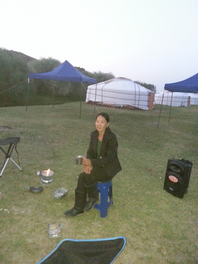 Nach der ersten Ortschaft, Tsagaannuur, entwickelt sich die Piste dann doch zu einer veritablen Teerstraße und wir kommen gut uns staubfrei voran. In Olgii, einer für die Mongolei größeren Stadt machen wir dann im Blue Wolf Ger Camp Quartier. Wieder eine Jurte mit 3 Betten, aber es gibt eine Dusche und WC gleich nebenan. Also schnell frisch gemacht und dann auf zum Restaurant Pammukale, dem besten türkischen Restaurant in der Mongolei. Die Stadt ist recht staubig, aber es wird an allen Ecken gebaut bzw. renoviert.