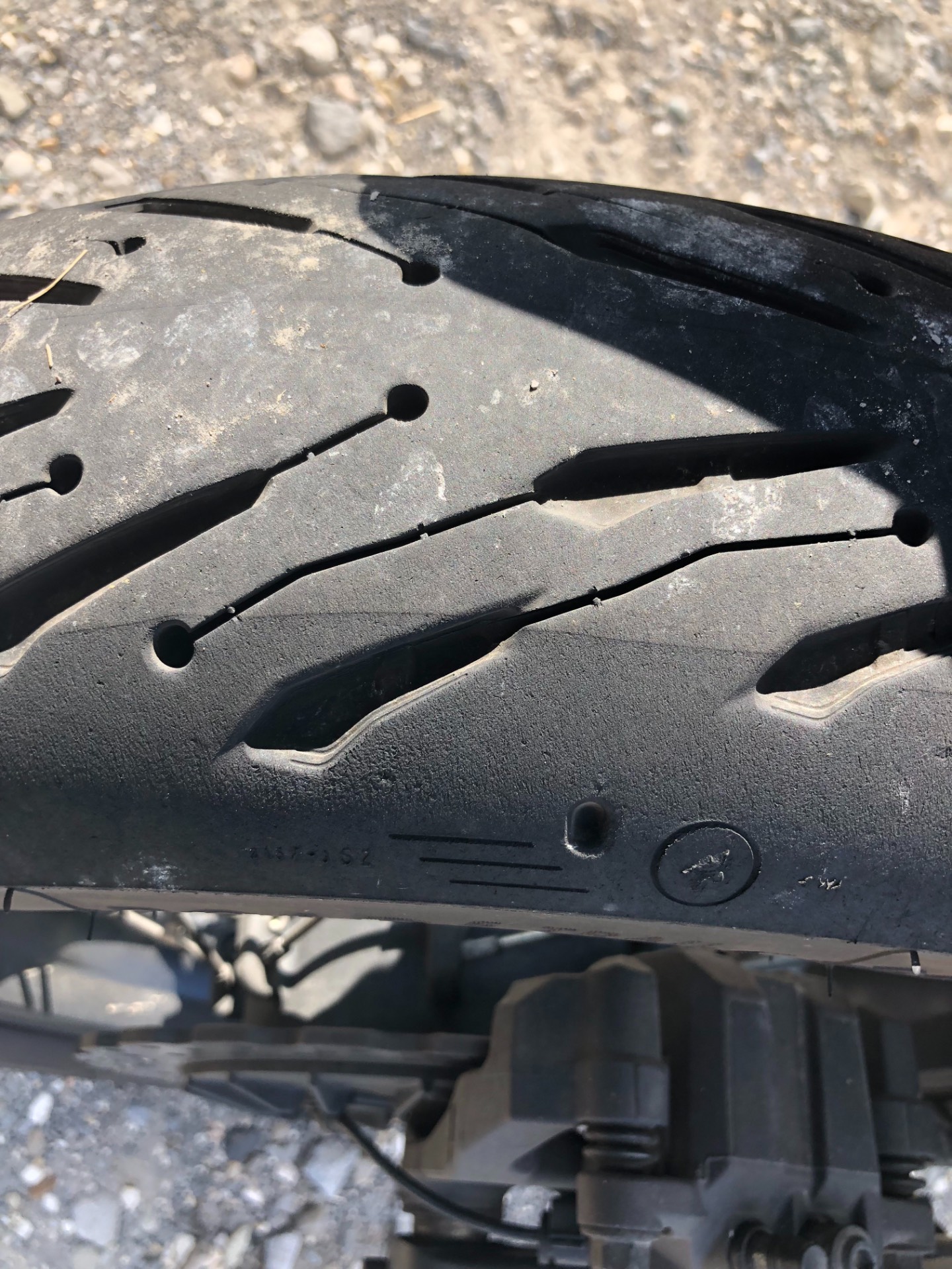 bei meiner Pyrenäen Tour konnten man schön die Reifenkomponenten des Michelin Road 5 sehen !! Nach knapp 4500 km Pyrenäen bei Regen und hohen Temperaturen kann ich sagen das
