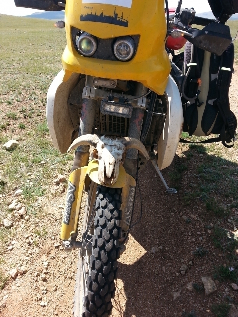 Heute treffen wir auf zwei Engländer, unterwegs mit einer 800 GS und einer modifizierten XCountry. Natürlich tauschen wir uns über die Wegverhältnisse aus, ebenso über die Moppeds und überhaupt, da auch ein paar Mongolen dabei sind, wird es ein etwas längerer Stopp, aber absolut lustig und interessant.