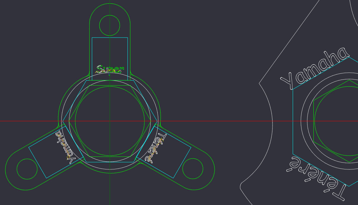Ich habe mir mal aus der Bucht (aus HongKong) günstige Alu-Gabelversteller geordert und im CAM geschaut wie das mit der Gravur aussehen könnte.