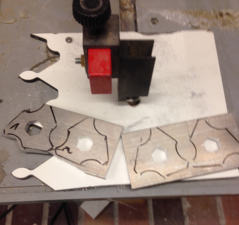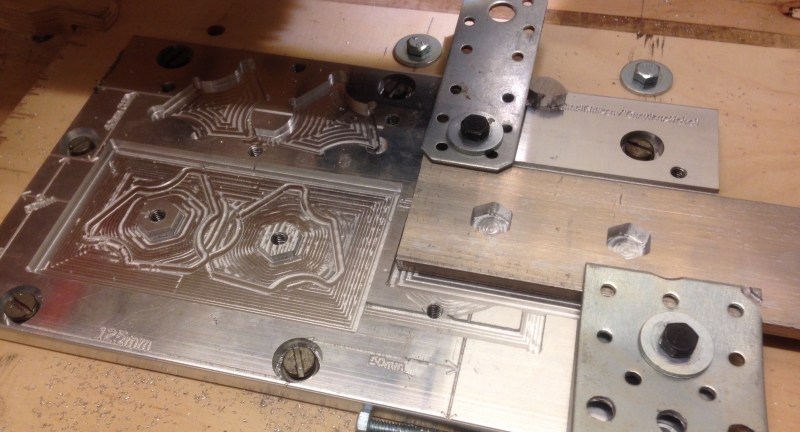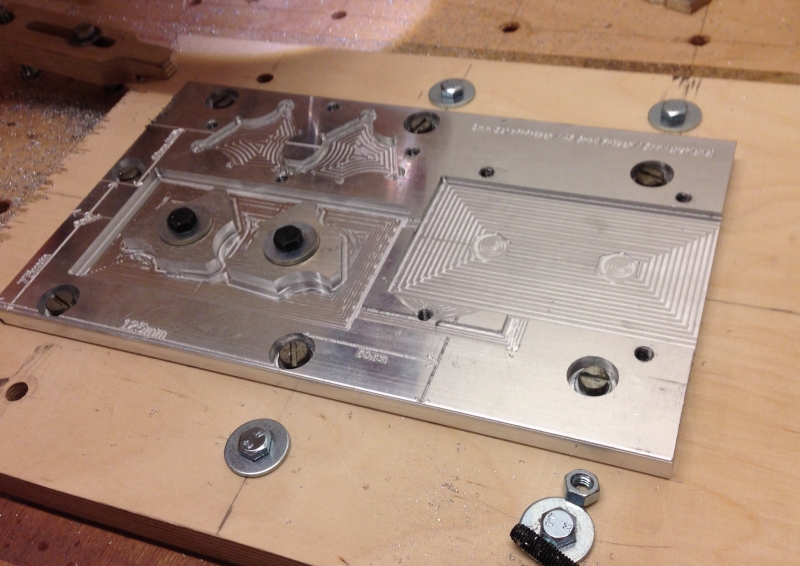 Naja, habe die Gravur nochmal anders berechnen lassen, finde ich besser. Außerdem habe ich heute an 5 Sätzen der eigenen Kreation die Kontur geschruppt.