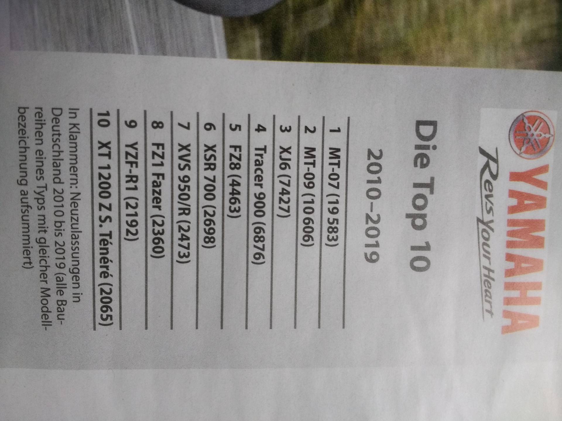 Hallo Thomas, das ist in der Tat interessant. Ändert zwar nichts daran, dass die Verkaufszahlen der XT wohl weit hinter den Yamaha-Erwartungen zurück geblieben sind. Aber 3100 verkaufte XT in 2016 passen nun mal nicht zu den in MOTORRAD angegebenen 2065 bis Ende 2019. Da frage ich doch gleich mal nach, wie diese Zahl zustande gekommen ist.