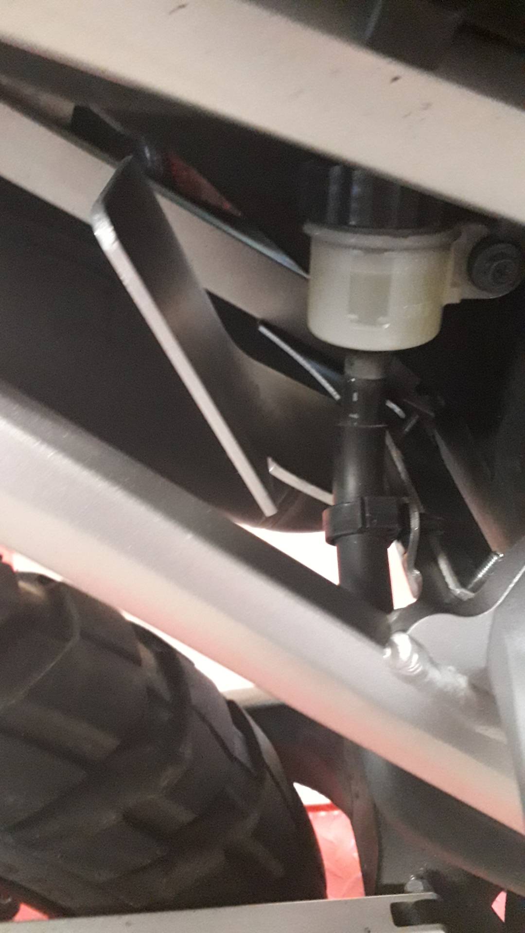 Habe mir ein Steinschlagschutz aus Alublech für den Behälter Bremsflüssigkeit hinten gebaut....