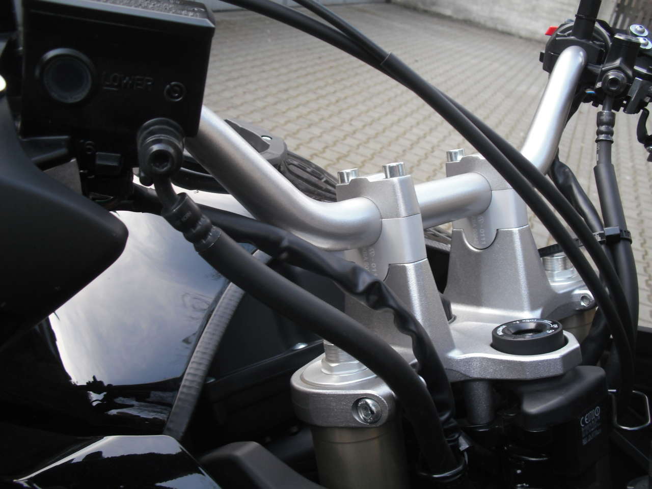 Die Vario-Lenkerverlegung von sw-motech habe ich jetzt ausgeklammert. Das wird definitiv zu knapp bzw. ist ohne weitere Massnahme überhaupt nicht machbar.