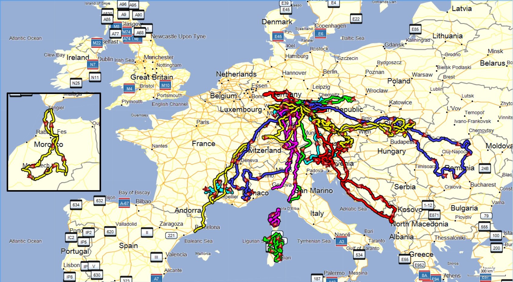 Bereiste Länder: 16 (D, A, I, F, SLO, HR, BIH, NME, CZ, PL, E, MA, CH, SK, H, RO)