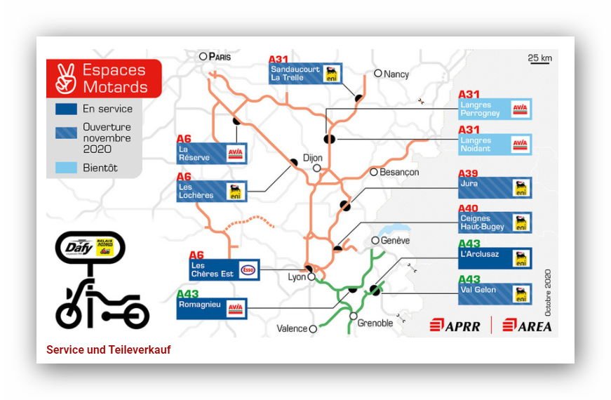 Rasthöfe für Biker in Frankreich