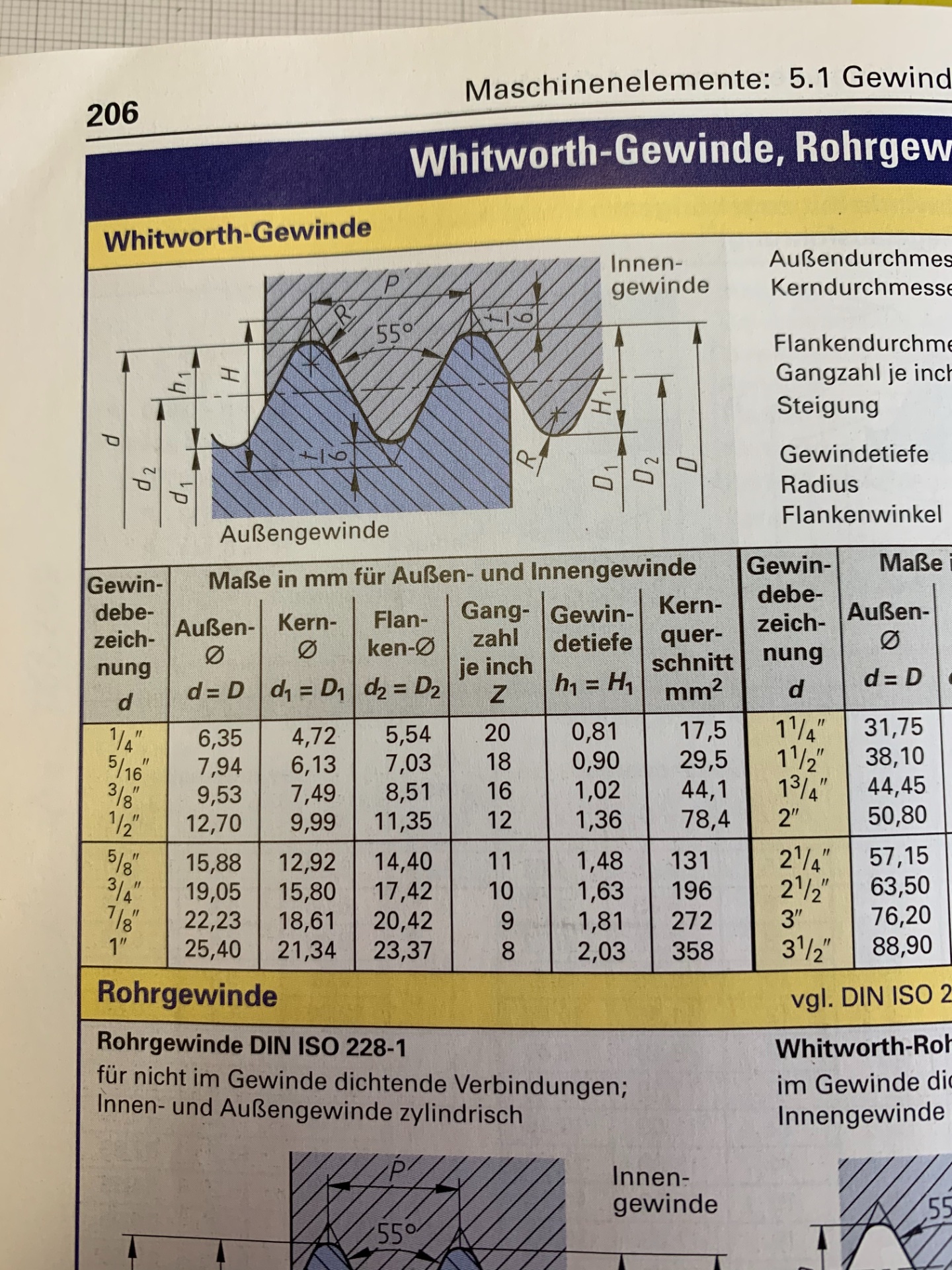 Vielleicht benötigt man ein Tabellenbuch was genauso alt ist wie der Schraubstock.