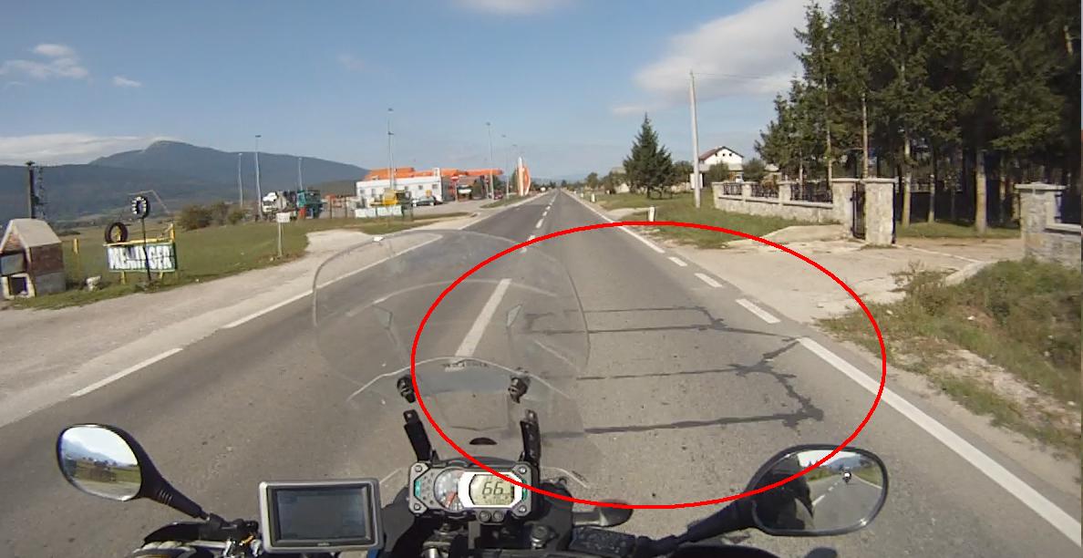 In Bosnien findet man häufig Induktionsschleifen auf dem Asphalt (Bild 1 und Bild 2).