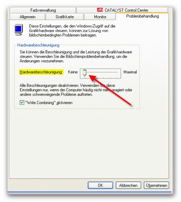 Falls du XP hast kannst du die Hardware beschleunigend mit einen Schieberegler einstellen.