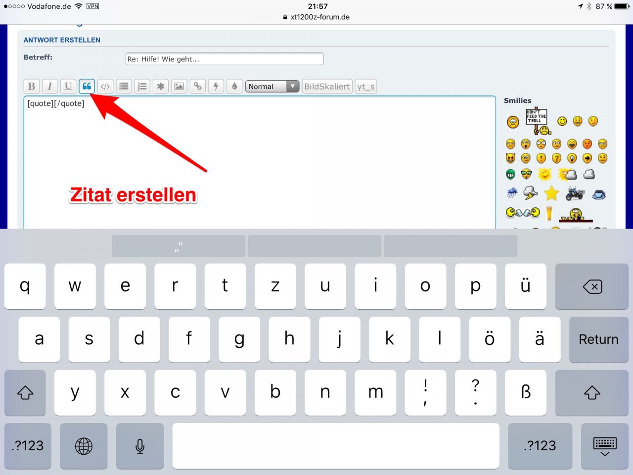 könnte mir mal bitte einer erklären wie man in einem laufenden thread jemanden "zitiert".