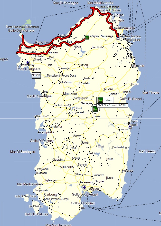 Ich war ja auch dabei und kann meinen Senf dazu abgeben: Die Touren waren aus dem Reiseführer vom Georg. Bei der Erstellung der darin vorgeschlagenen Touren ging es scheinbar darum, irgendwie die ganze Insel abzudecken, was bei Sardinien aber absolut nicht sinnvoll ist. Die Küstenregionen, die wir gesehen haben, kann man weitgehend in der Pfeife rauchen, da es hier viele Ortschaften und tatsächlich kilometerlange Geraden gibt, oft mit völlig sinnlosen 50er-Beschränkungen.