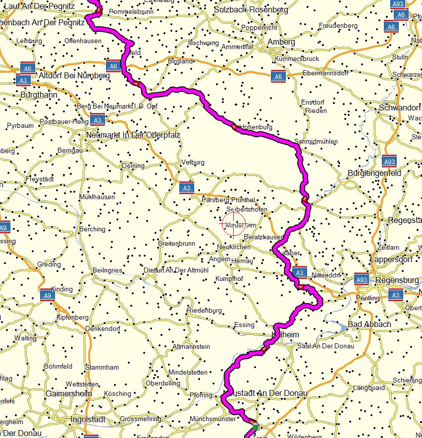 Die Route von dort bis zum Posthotel sind dann 313 km, an Regensburg vorbei durch Oberpfalz und Fränkische Schweiz. Für die Rückfahrt muss ich noch mal was basteln.