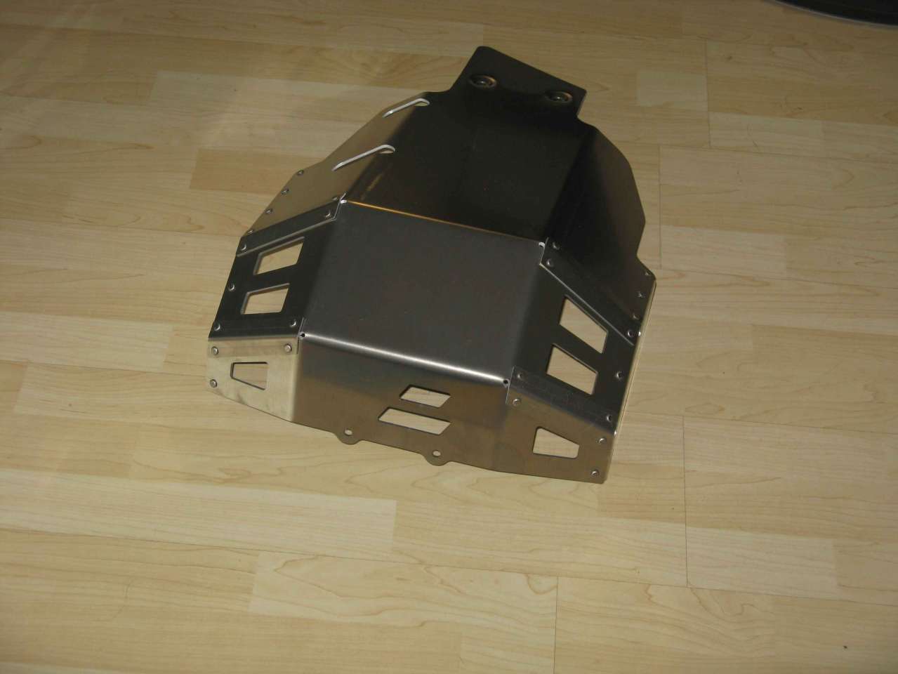 Vielleicht muss ich das jetzt auch nochmal machen, den der Schutz ist nicht nur gut befestig, er geht vorn richtig hoch über den Ölfilter und hat wenig Löcher im mittler Spritzwasser-Bereich.