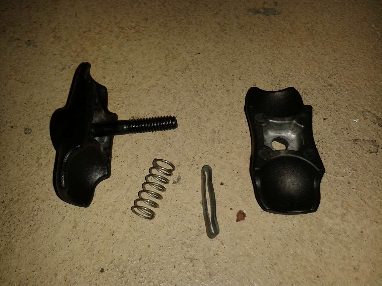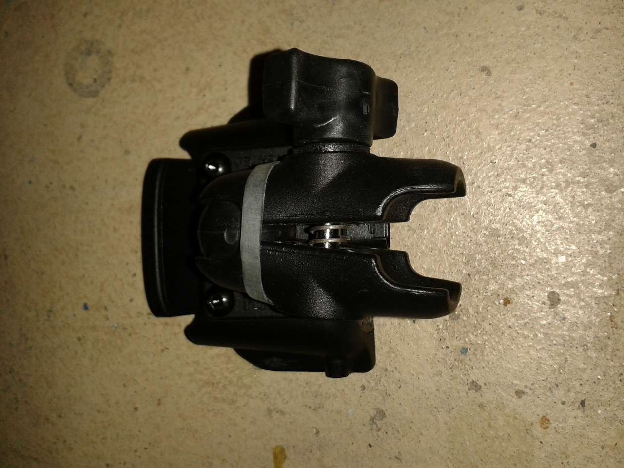 Eine Spiraldruckfeder zwischen den beiden Halbschalen zum spreizen und ein Stück Fahrradschlauchgummi zum zusammenhalten an der Navihalterung brachten die Lösung.
