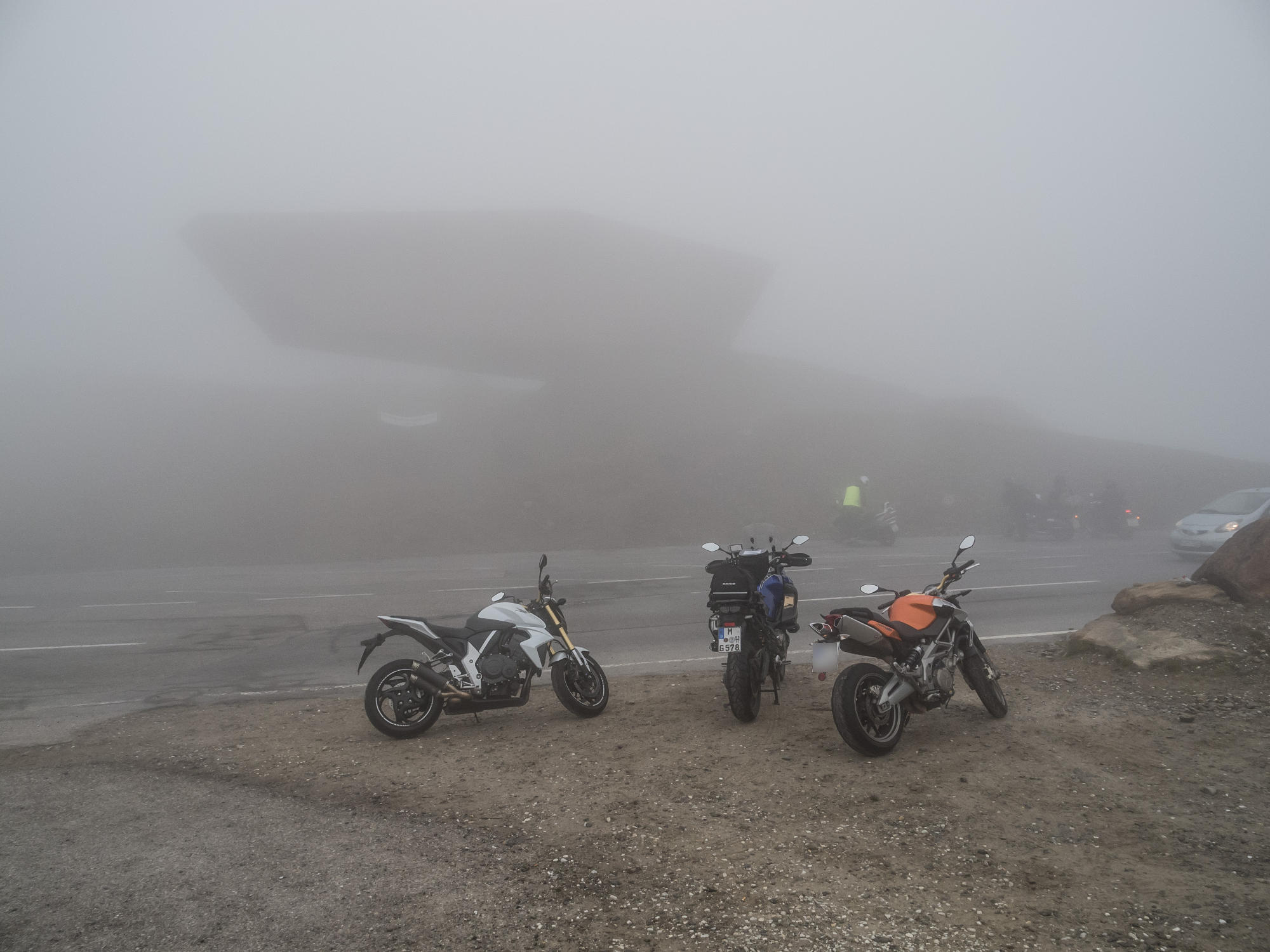 (Bei meiner letzten Fahrt übers Timmelsjoch Mitte September hatte es 2 Grad, Nebel mit Sichtweite ca. 5 m und leichten Schneefall. Die Einsamkeit war bizarr).