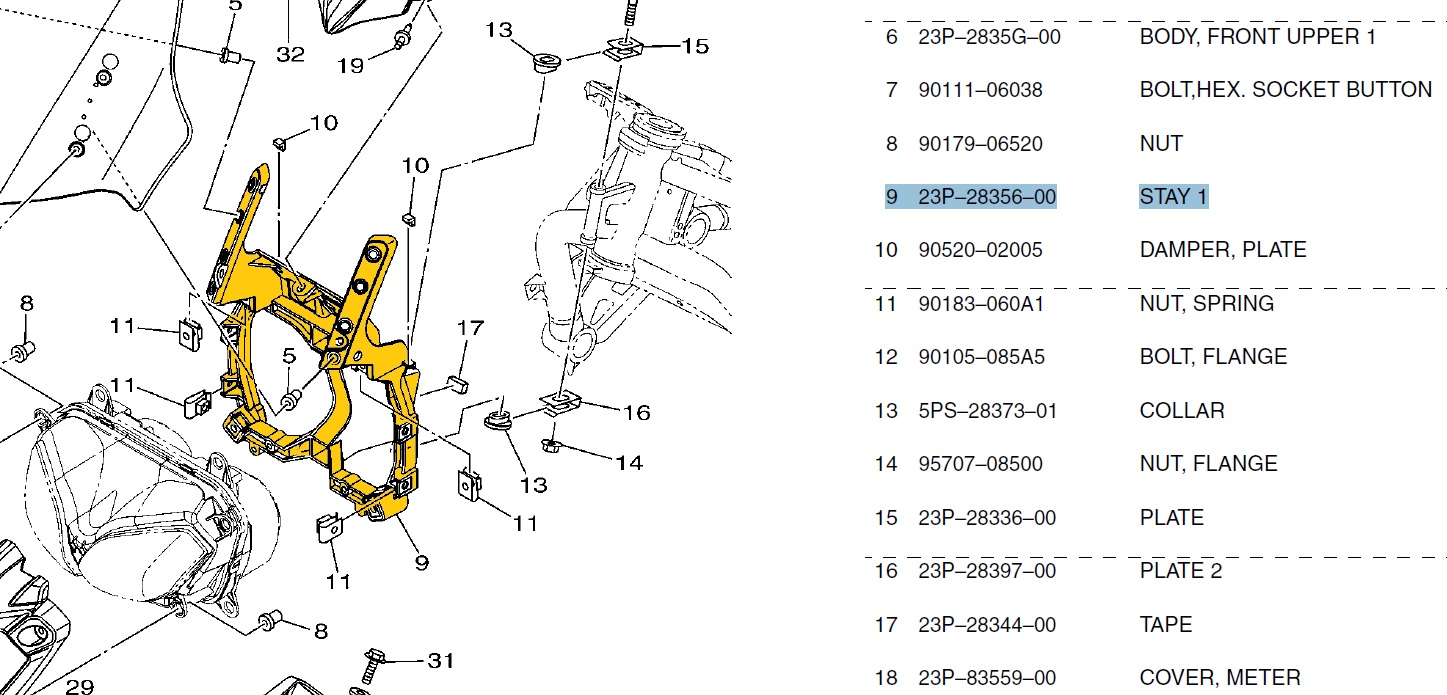 Diese 5 Bruchstellen haben jedoch keinen Einfluss auf die Stabilität der Konstruktion. Ich bin seit mehr als 2.500km damit unterwegs. Der einzige Nachteil ist, dass sowohl Tacho als auch der Scheinwerfer als auch die Scheibe etwas schief stehen und die ganze Verkleidung ca. 2cm nach rechts verschoben ist. Ich gehe auch davon aus, dass ich so nicht durch den TüV komme.