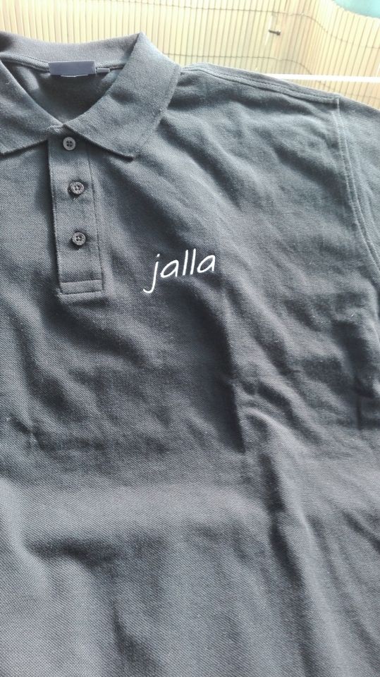 Tshirt wäre mir zwar lieber gewesen, aber wegen der Größe der Rückenstickerei wurde mir empfohlen, lieber Poloshirt zu nehmen.