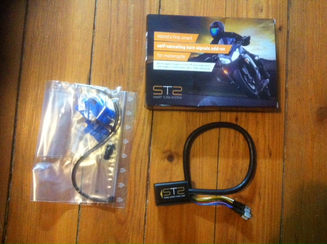der Bausatz ist angekommen. Sehr übersichtlich und mit 150 € sicherlich kein Schnäppchen. Wenn es aber nur einmal verhindert, daß man auf einer Haupstraße fährt, den Blinker vergessen hat und man in ein Auto fährt, welches aus einer Seitenstraße kommt, weil das Motorrad geblinkt hat, dann hat sich das für mich schon rentiert.