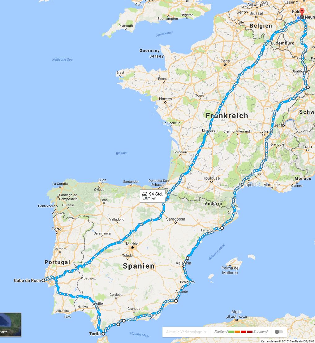 Fahrt hin und zurück ist aber noch nicht geplant. Ich möchte aber im Osten (Seealpen) runter fahren und im Westen (Atalantikküste) wieder nach Hause.