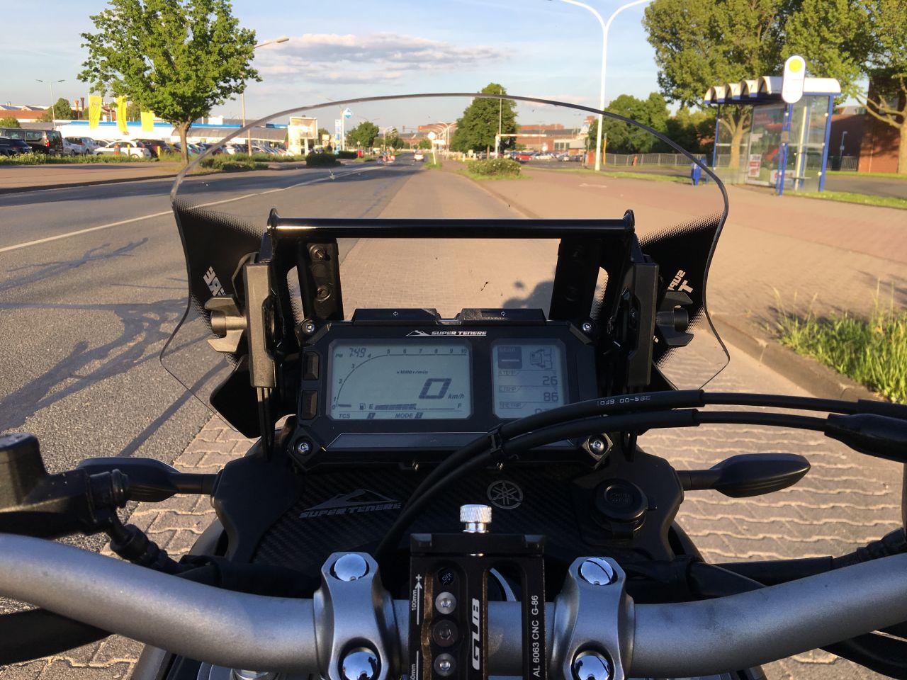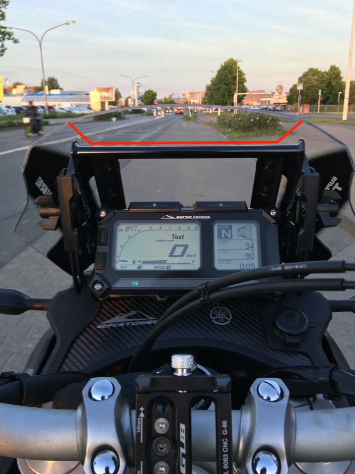 Ich gehe stark davon aus auf das ich um eine Scheibenhalterung aller Touratech mit Verstellmöglichkeit im Winkel nicht herum komme für dieses Projekt. Aber noch hat die original Scheibe etwa Material über zum absäbeln.