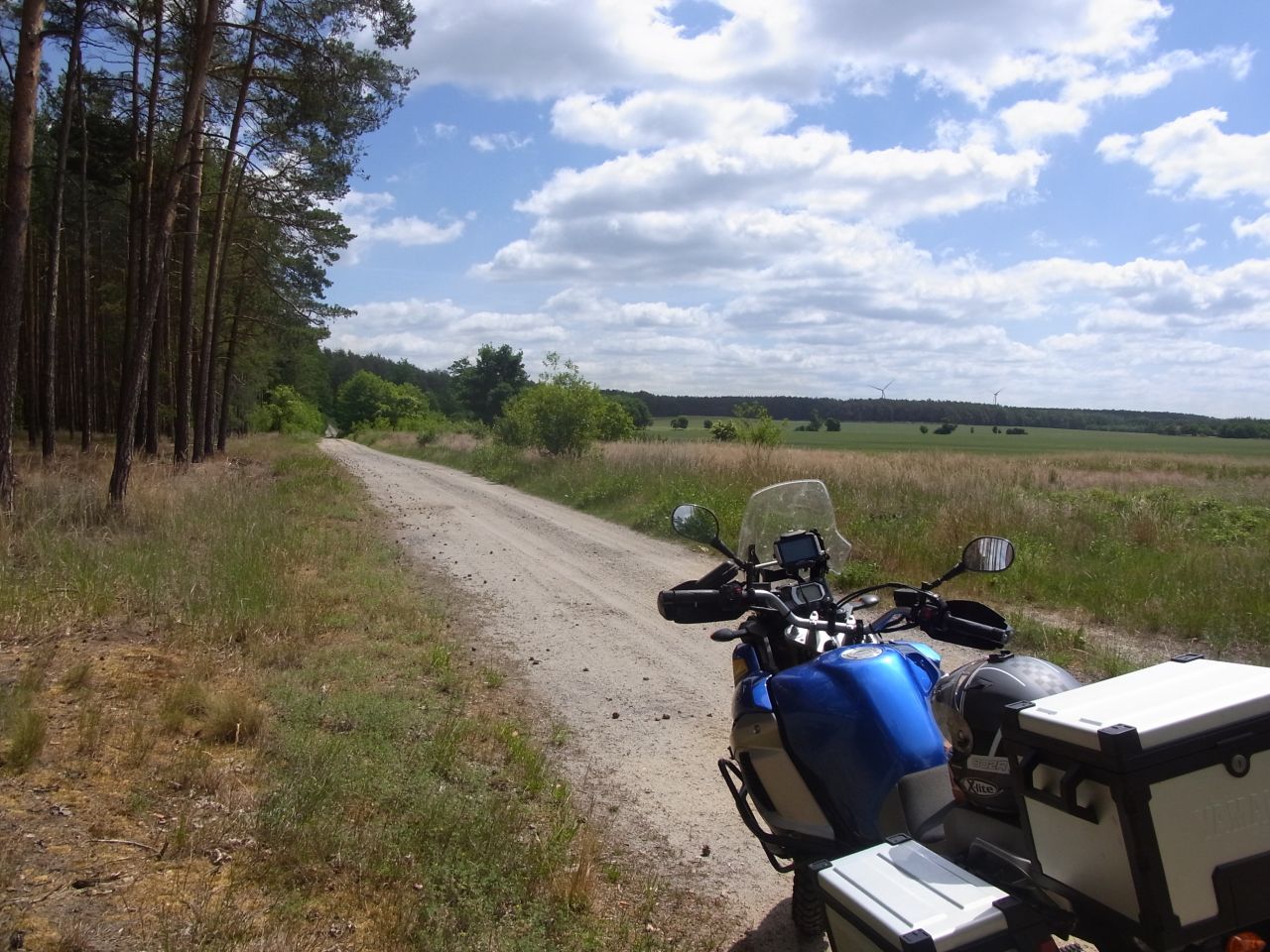 .5 Tage sollten es werden und somit wurde via Motoplaner für fahrtechnische Kurzweil gesorgt. Die Tour letztes Jahr wurde ja von der Tourenfahrer-Datenbank gezogen und leicht umgearbeitet. Viele Touristenhighlights lagen mit auf jener Tour. Diesmal wollte ich Land und Abgeschiedenheit pur. Also verband ich die kleinsten auffindbaren Strassen zu einer 200km Tour. Ein Ziel hatte ich: Deutschlands grösste Wüste bei Lieberose. Desweiteren wurden einige kleinere Abendrunden geplant mit dem Schwerpunkt Offroad. Diese lagen je Tour so bei 40-70km. Alles in allem waren es incl Hin und Rückfahrt so um die 900km die gefahren wurden. Brandenburg hat mich mal wieder begeistert und meine Tour war ein Volltreffer. Trotz der Tatsache, das die Tour in der laufenden Woche stattfand, trafen wir kaum auf Pkws. Teilweise waren wir auf Fahrradweg-ähnlichen Strassen unterwegs und wurden mit schönsten Landschaftseindrücken belohnt. Ideales Terrain für die Dicke. doch nun zu den Bildern, viel Spass....