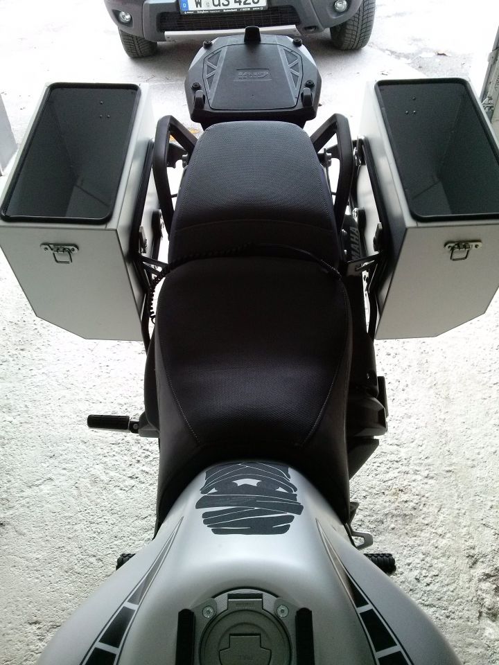 Ich finde Koffern "grundsätzlich" nicht schön. Meine Yamaha Koffer sind für mich schon ein notwendiges Übel. Was ich hier in dem Fall aber gut finde, ist die symmetrische Anordnung. Das sieht schon wesentlich besser aus als manche andere Lösung