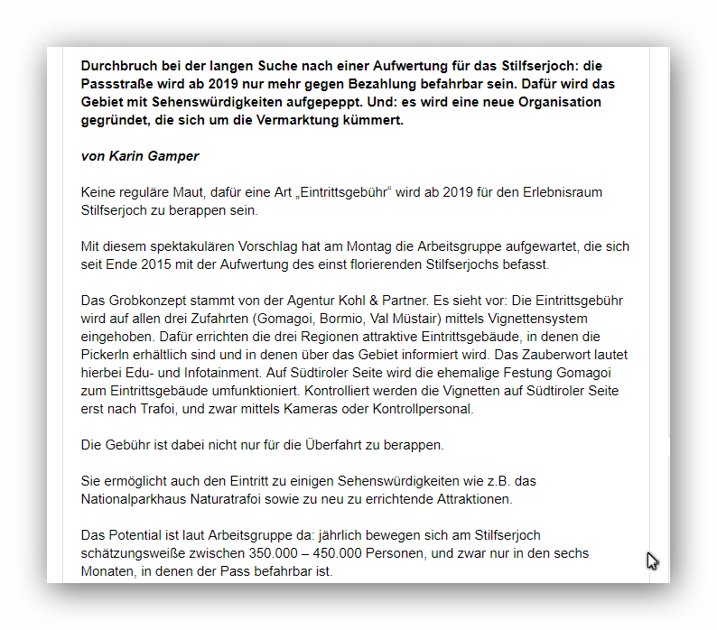 Aber ernsthaft: Das klingt so, als würde es nach dem Konzept Großglockner oder Kaunertaler Gletscherstraße organisiert. Damit kann ich prima leben.