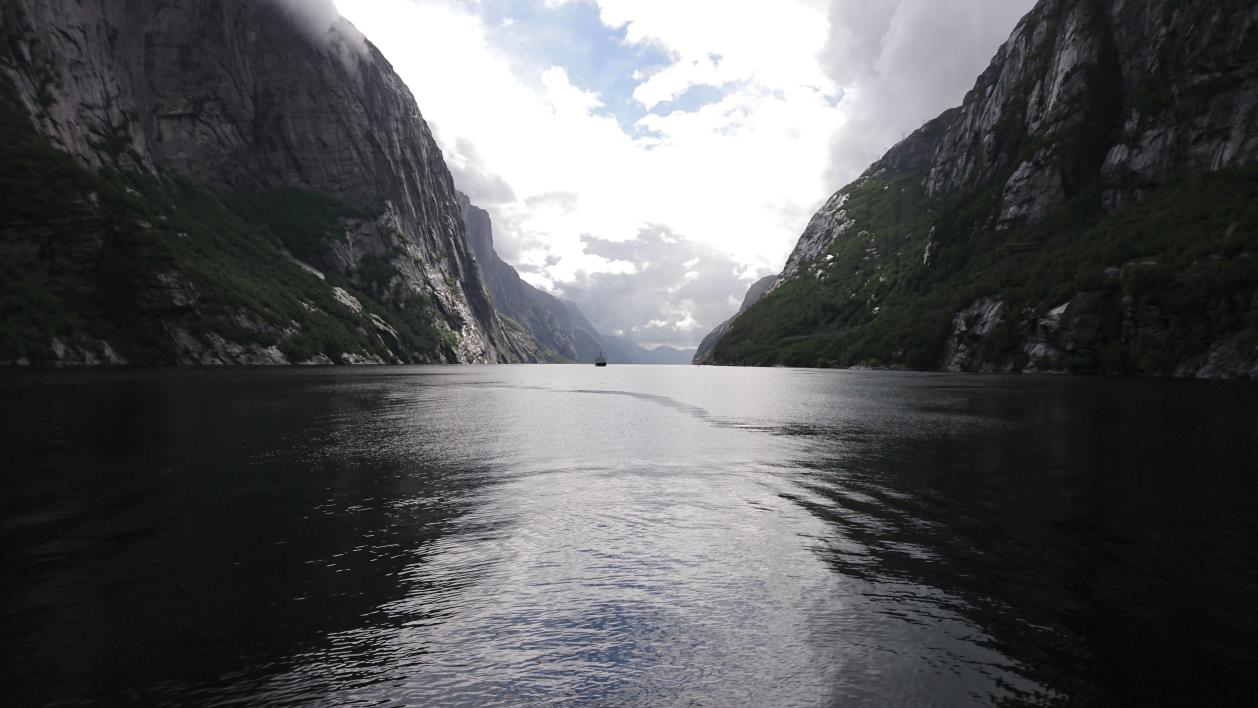 Im Fjord selber lag ein Kreuzfahrer der Hapag Lloyd, wenn man bedenkt, wie groß diese Schiffe sind , kann man sich vorstellen welche Ausmaße der Fjord hat. Am Ende des Fjords haben wir dann unsere Zelte aufgeschlagen, ein Bierchen getrunken und zufrieden eingeschlafen.