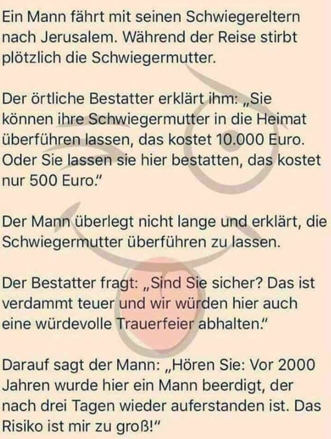 so etwa 1200 €." - "In Ordnung. Lassen Sie die Leiche herbringen. Wir machen sechs Griffe dran." :oops: