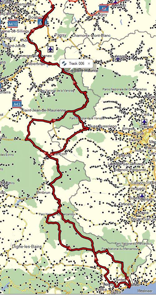 Die hatte ich mir glücklicherweise aufs Navi geschoben. Unser damaliger Initiator hatte vor, die ganze Tour nur mit Karte zu fahren. Irgend wann ist es uns restlichen dreien zu bunt geworden. Wir haben uns manchmal so etwas von verfranzt, bzw. auch aus Orten den Einstieg zur alten Route zu finden, dass wir dann gesagt, wir fahren nun nach Navi. So war die Tour super, vielleicht etwas kurz, wir hatten aber nur eine Woche ingesamt. Von uns vieren konnte keiner französch sprechen und wir sind nicht verhungert und was zum schlafen haben wir auch gefunden. Die Anzahl 4 ist nicht verkehrt, 2 Mann haben sich immer ein Zimmer geteilt. Man(n) muss natürlich als Erster einschlafen können