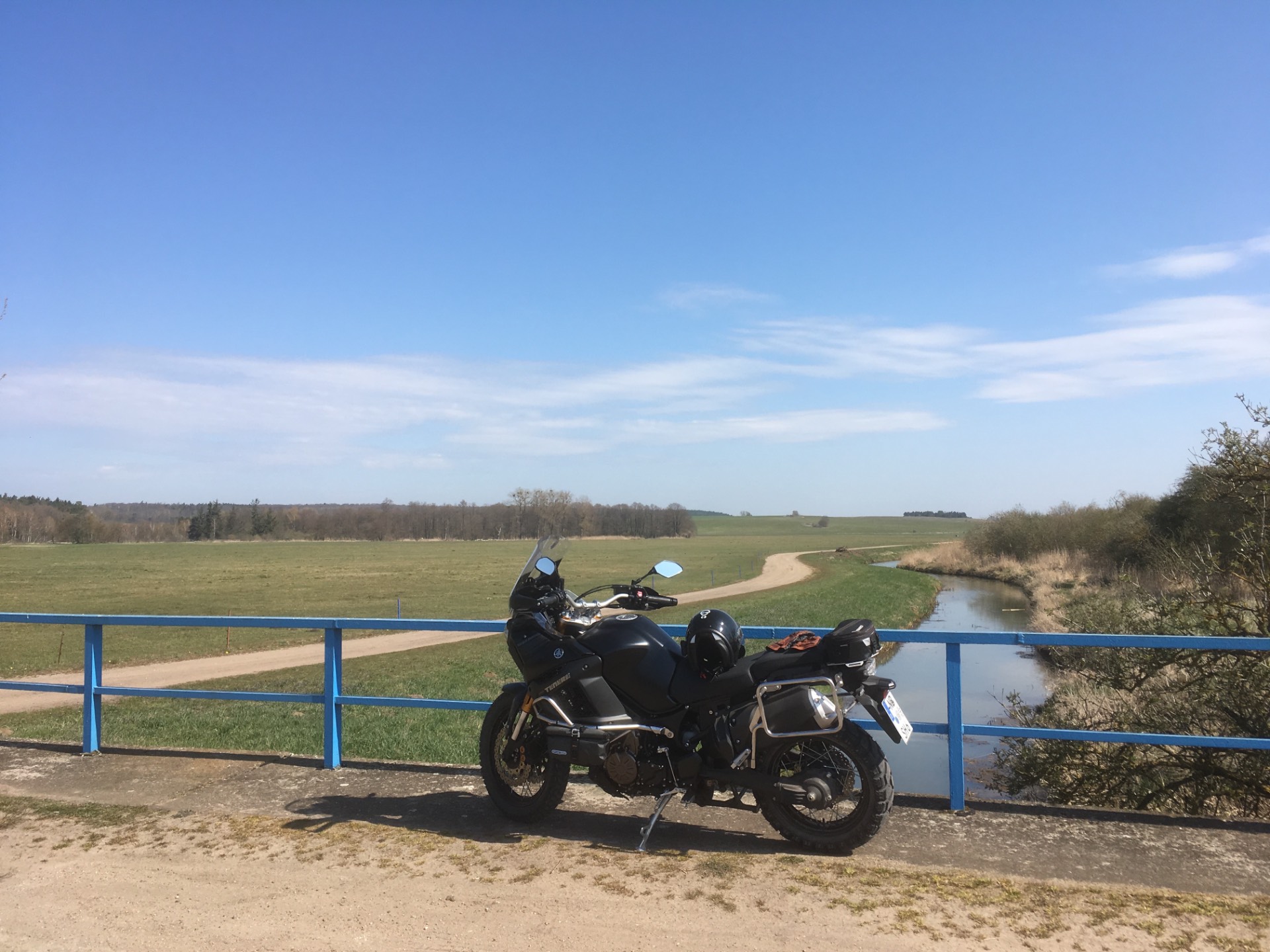 Hab mir gleich die Wald-, Feld- und Wiesenwege vorgenommen, auf denen ich bis jetzt immer Blut und Wasser geschwitzt habe, weil das Motorrad auf ihnen immer fröhlich rumrutschte. Mit den Mitas überhaupt kein Problem. Auch Wege, die ich mich vorher überhaupt nicht getraut habe zu befahren, waren machbar. Selbst eine, von Wildschweinen, umgepflügte Koppel war befahrbar. Tiefer Sand, nasses Gras und Matsch waren nicht dabei. Ich denke, da wäre dann auch Schluss. Bin begeistert. Die paar km auf der Straße waren auch super. Vertrauen ab den ersten Meter. Es rattert, macht Geräusche bis ca. 100km/h und eiert etwas. Zur Kenntnis genommen. Für Unbehagen oder gar eine Beschwerde reicht es nicht. 160 km/h, laut Tacho, geht auch. Ich hätte nie gedacht, daß ein Reifen mit so viel Off Road Performance, sich trotzdem noch so passabel auf der Straße fahren lässt. Und die