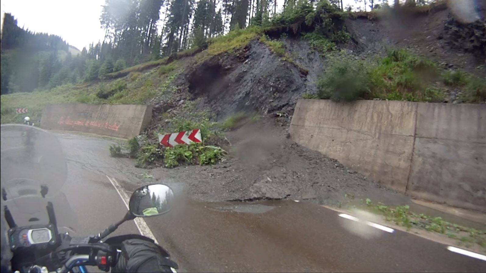 Die Auffahrt zum Transraurau gestaltete sich auch interessant. Es begann wieder zu regnen. Immer wieder waren Erde, Steine oder Bäume abgerutscht und lag neben oder auf der Straße.