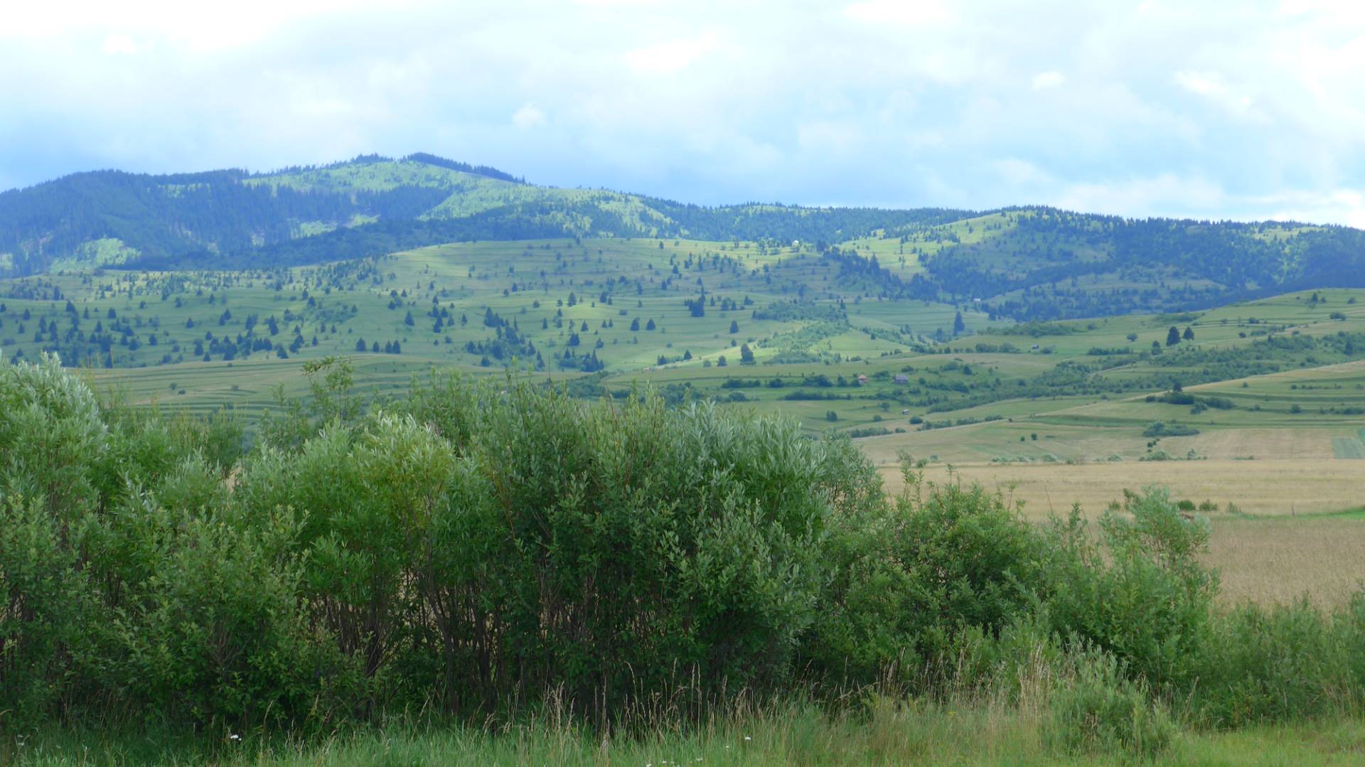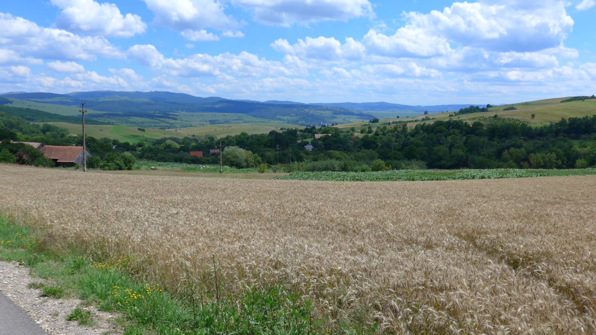 Um 8.50 Uhr fuhren wir los. Die Sonne schien, die Temperatur lag bei 13 Grad. Das erste Ziel war der Tarnita Pass, der ca. 40km südwestlich von unserem Startpunkt lang. Nach 10km Fahrt standen wir vor einer roten Baustellenampel. Die Straße in der Baustelle sah komisch aus, denn da fehlte die linke Seite. Zum Glück hat der Fluss nur die linke Seite der Straße mitgerissen und eine Spur übrig gelassen, denn es gab nur diese Straße nach Süden. Die nächsten 20km haben wir Orts-Hopping gemacht. Wenn ein Ort endete, begann sofort der nächste. Die Straße (DJ 177A) bestand aus Betonplatten und wir hoppelten so vor uns hin.