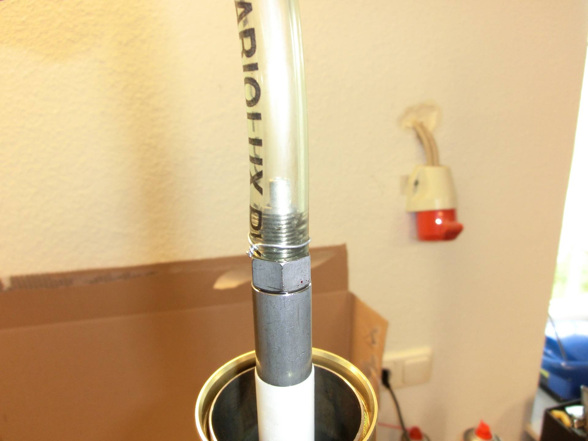 Die obere Veschlusskappe hatten wir ja bereits gelöst, so dass sie jetzt einfach herausgedreht werden kann. Dies geht anfangs etwas stramm, weil die Kappe im Inneren mit einem O-Ring gegen das Standrohr abdichtet.