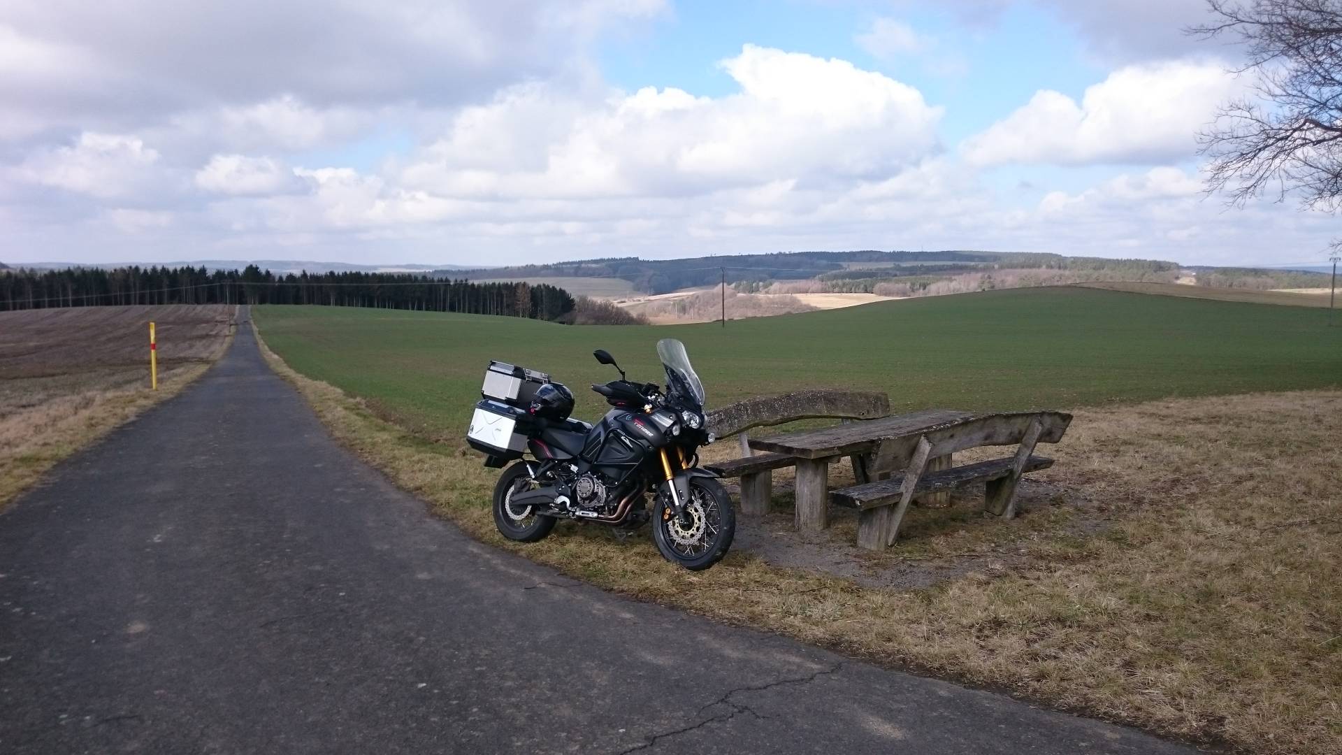 Hach, mit den Bänken könnte es tatsächlich sein, dass Ihr da oben im Vorteil seid. Ich habe am Sonntag auch wieder nur eine höchst spartanische Version an einer Hütte auf 1400m Höhe gefunden, die schneebedingt allerdings nicht zweirädrig zu erreichen war: