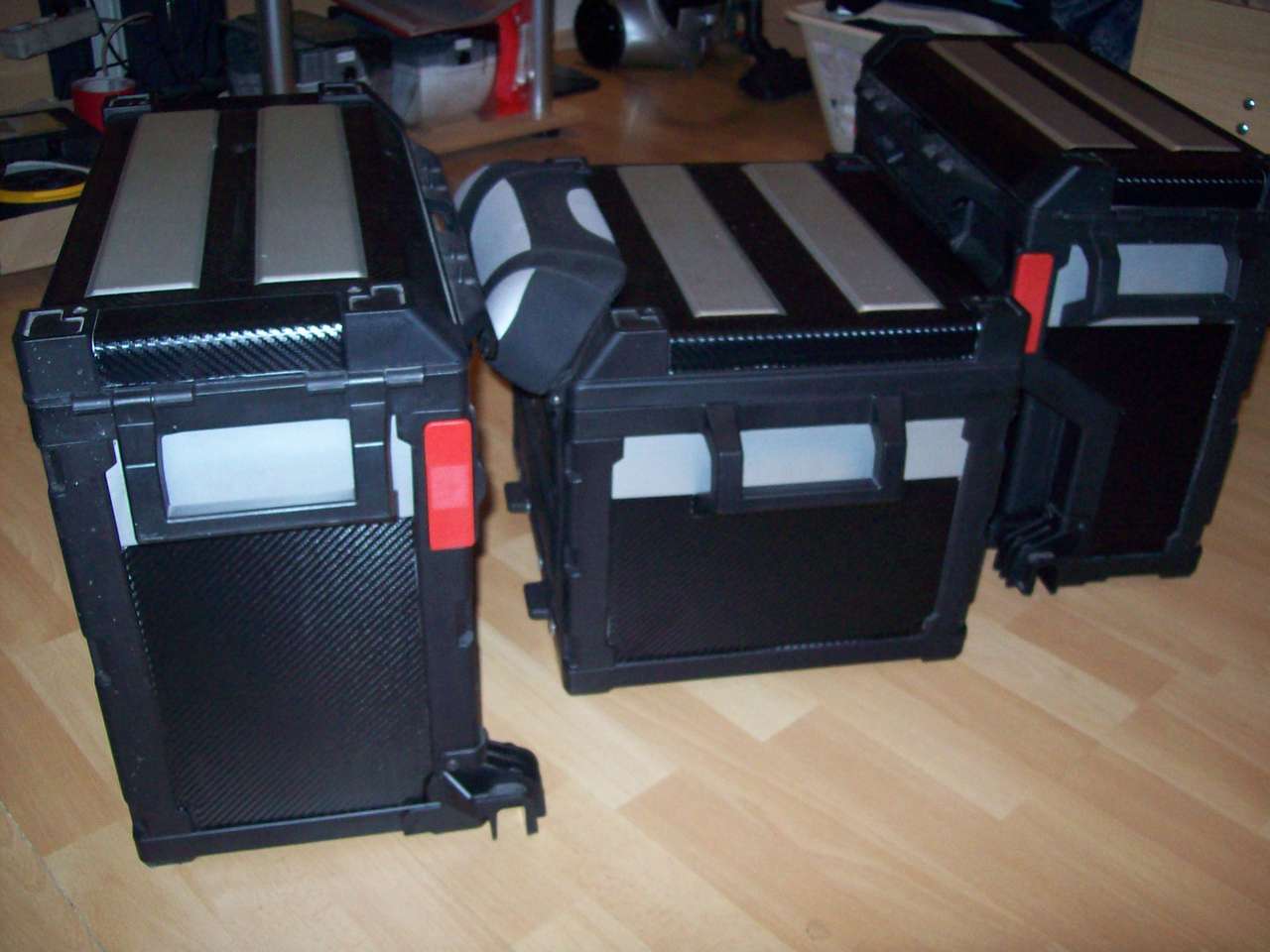 Ich werde meine Originalen Koffer mal ein wenig mit blauer Carbonfolie aufpeppen.