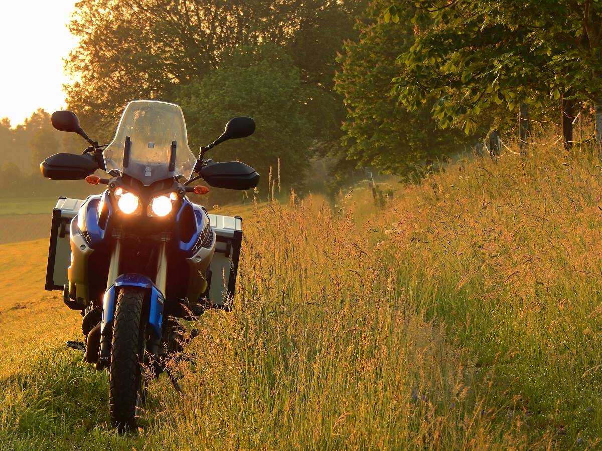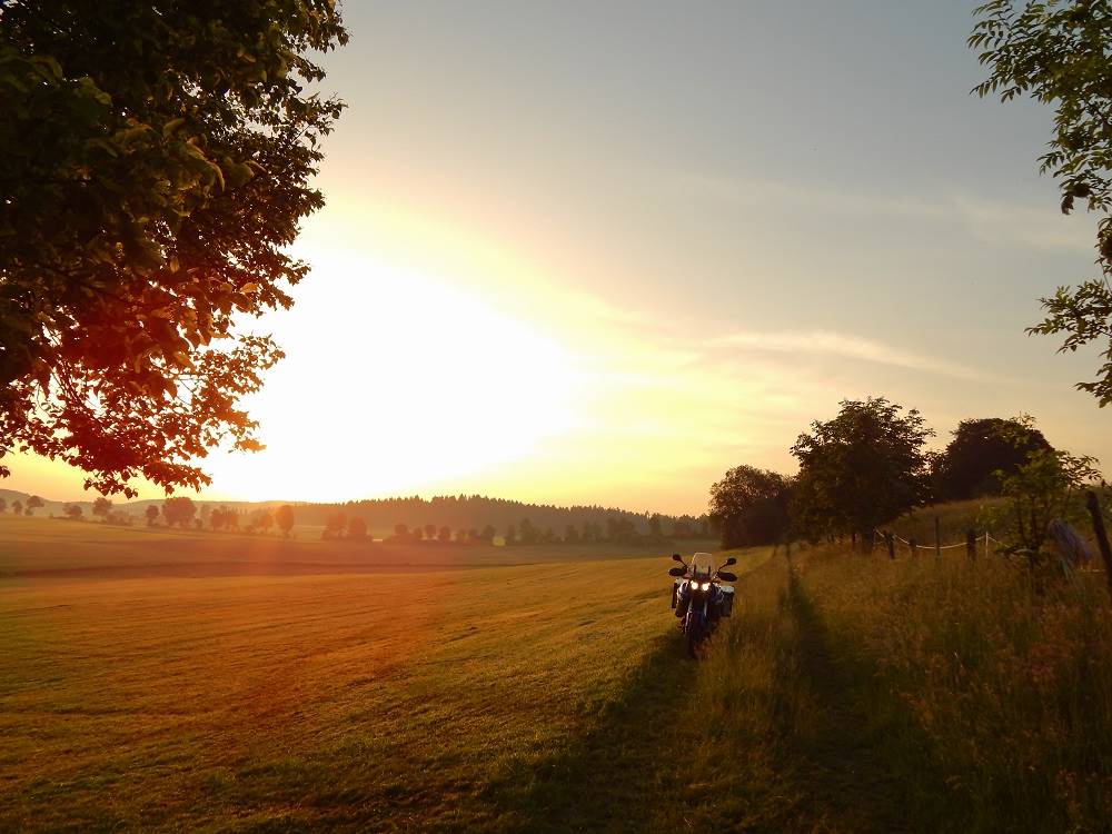 Eine Fahrt durchs morgendlich feuchte hohe Gras eines Feldweges, erfreut nicht nur die Sinne sondern ergibt auch eine gute Unterbodenwäsche, dringend notwendig nachdem im Urlaub einige Schotterpässe befahren wurden.
