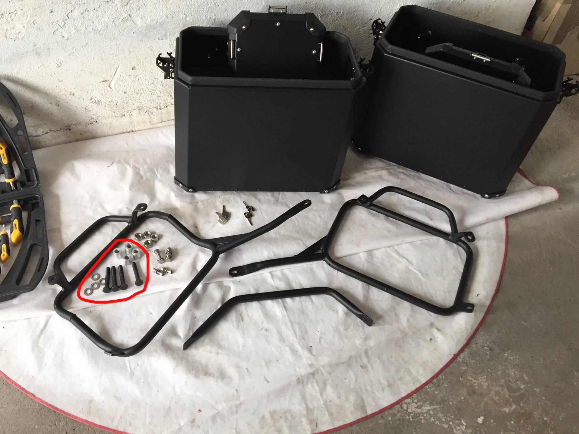 Die oberen Aufnahmen haben gepasst (Hülsen waren dabei) es waren die Aufnahmepunkte an den Soziusrasten die etwas abgewichen sind.
