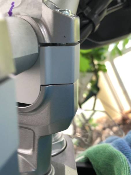 Das ist die obere Lenkerklemmung, die einen Spalt haben muss, da sonst eventuell der Lenker nicht fest genug geklemmt werden kann, wenn die Flächen zu früh aufeinander treffen. Ich rede von der Paßgenauigkeit auf der alten Lenkeraufnahme - sieh Bilder.rubbergum hat geschrieben: Do 5. Jul 2018, 12:26 Touratech legt ja eine Montageanleitung bei bzw. kann man auf der Homepage unter dem Artikel downloaden. Dort ist der Spalt auch markiert.