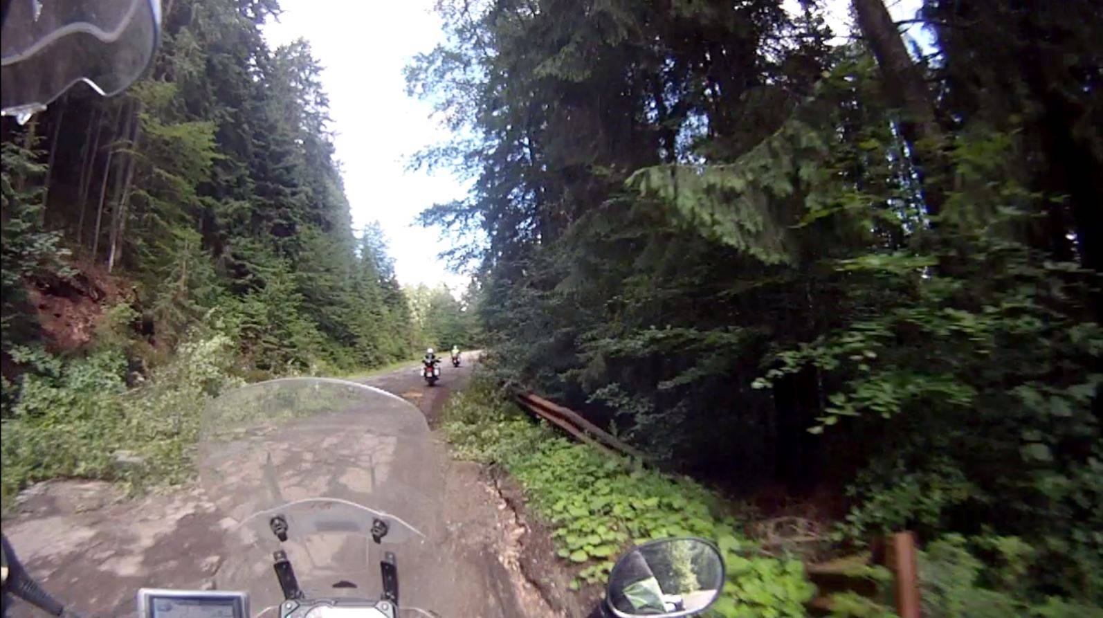 Die Abfahrt auf der anderen Seite war auch frisch geteert, aber auch nass mit der einen oder anderen Schottereinlage.